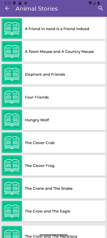 অ্যাপটিতে অ্যাডভেঞ্চার গল্প, পশুর গল্প, রূপকথা, শয়নকালের গল্প, ক্লাসিক গল্প, সাহসের গল্প, বন্ধুত্বের গল্প এবং আরও অনেক কিছু সহ বিস্তৃত বিভাগ রয়েছে।
