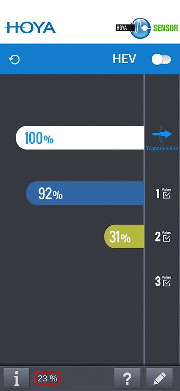 অ্যাপটিতে একটি অনন্য মেনু রয়েছে যা আপনাকে HOYA সেন্সর মডিউল সহ ট্যাবলেট বা ফ্লুরোসেন্ট লাইট ইত্যাদি আলোর উত্স থেকে নীল আলো এবং UV পরিমাপ করতে সক্ষম করে।