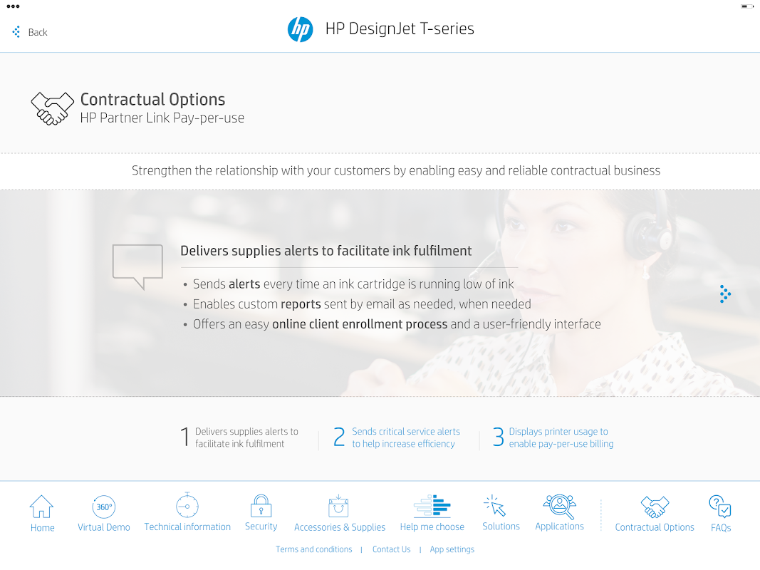 এইচপি DesignJet ভার্চুয়াল ডেমো এইচপি বিক্রয় ও এইচপি পার্টনার্স জন্য বিক্রয় টুল ব্যবহার করার জন্য একটি সহজ। এটা সব তথ্য যে বিক্রয় কর্মী, তাদের ক্লায়েন্ট দর্শন জন্য প্রয়োজন হবে সহজেই অ্যাক্সেস এবং প্রিন্টার যা পণ্য, ভিডিও, প্রযুক্তিগত তথ্য চাদর ও ডকুমেন্টেশন প্রধান বৈশিষ্ট্য যা ক্রমাগত সঙ্গে সবচেয়ে আপ আপডেট করা হয় দেখায় একটি 360 ডিগ্রি দৃশ্য প্রদানের হয়েছে -to-ডেট সংস্করণ। এই টুল দিয়ে আপনি এইচপি DesignJet পরিবারে পণ্য, মালপত্র, অ্যাপ্লিকেশন ক্যাটালগ, এইচপি পরিষেবাগুলিতে তথ্য এবং আপনার ক্লায়েন্ট এবং আরো অনেক কিছু দিয়ে মূল্যবান তথ্য শেয়ার করার ক্ষমতা তুলনা করতে পারবেন।