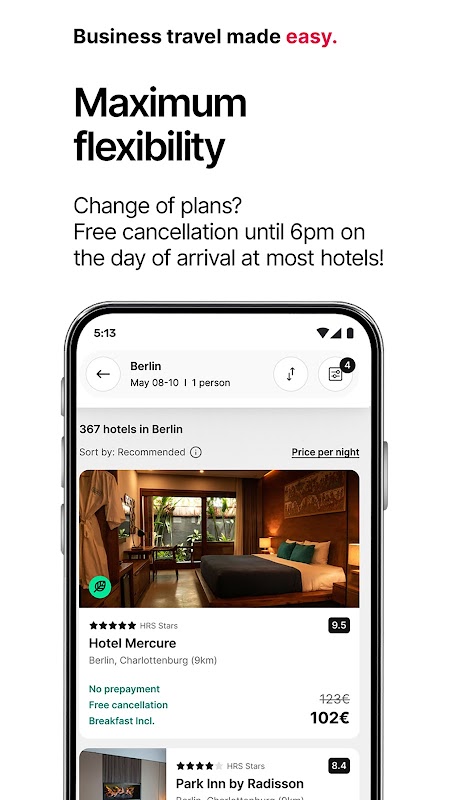 ব্যবসায়িক ভ্রমণ সহজ করা হয়েছে: HRS সহ হোটেল খুঁজুন, 50% পর্যন্ত সাশ্রয় করুন এবং একচেটিয়া myHRS সুবিধা উপভোগ করুন। নমনীয়তা এবং মূল্য সুবিধা - সব এক জায়গায়!