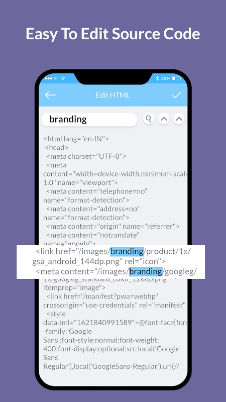 অ্যাপটি এইচটিএমএল ভিউ, সিএসএস ভিউ, এইচটিএমএল এডিটর, ওয়েব এডিটর এবং ডেস্কটপ ভিউ ফাংশন দেয়। আপনি সহজেই পৃষ্ঠা এবং ট্যাগ সম্পাদনা করতে পারেন। একটি টোকাতে আপনি ওয়েব এলিমেন্টে যেতে পারেন, কোড দেখতে এবং সম্পাদনা করতে পারেন। সরাসরি কোড লাইন, ট্যাগ এবং আরও অনেক কিছু অনুসন্ধান করতে পারে। অ্যাপ সহজেই ওয়েবপৃষ্ঠার জন্য কোড শিখতে সাহায্য করে এবং আপনি নিজে কোড করতে পারেন।