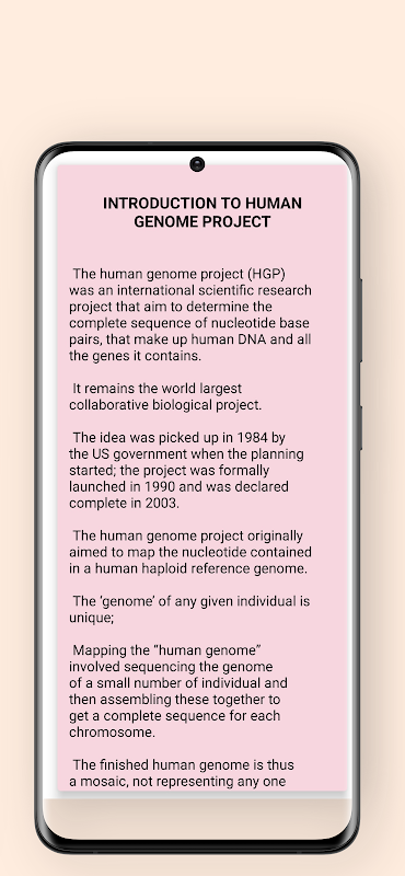 "হিউম্যান জিনোম প্রজেক্ট অ্যাপের মাধ্যমে আপনার ডিএনএর রহস্য উন্মোচন করুন। আপনার মোবাইল ডিভাইসে জিনোমিক্সের মনোমুগ্ধকর ক্ষেত্রটি অন্বেষণ করুন। আপনার জেনেটিক প্রোফাইল আবিষ্কার করুন, আপনার বৈশিষ্ট্য, স্বাস্থ্য এবং বংশের উপর আপনার জিনের প্রভাব উন্মোচন করুন। ইন্টারেক্টিভ সরঞ্জামগুলির সাথে জড়িত থাকুন, মানব জিনোমের ব্যাপক বোঝার জন্য কুইজ, এবং শিক্ষামূলক সংস্থান। আপনি একজন কৌতূহলী ব্যক্তি বা জেনেটিক উত্সাহী হোন না কেন, এই ব্যবহারকারী-বান্ধব অ্যাপ আপনাকে আত্ম-আবিষ্কারের একটি রোমাঞ্চকর যাত্রা শুরু করার ক্ষমতা দেয়। জেনেটিক্সের জগতে ডুব দিন হিউম্যান জিনোম প্রজেক্ট অ্যাপের সাথে।"