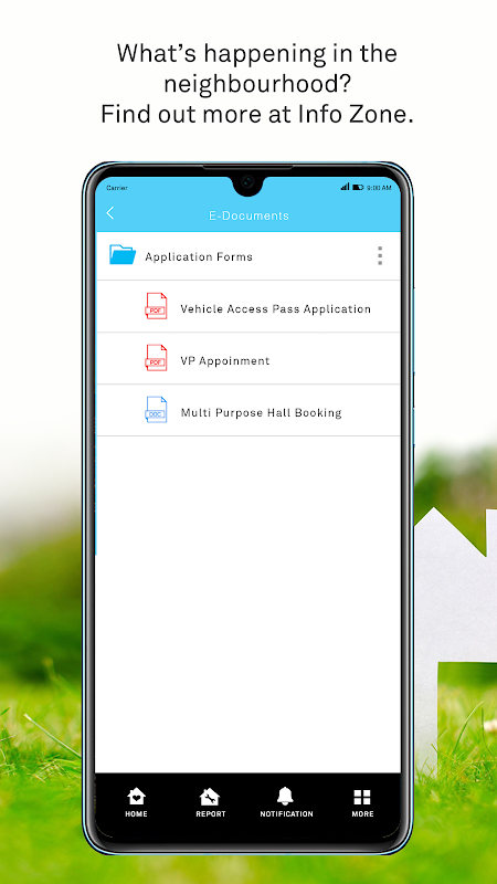 বাসিন্দাদের এই বৈশিষ্ট্য মাধ্যমে তাদের আশপাশ এবং ইউনিট মধ্যে ত্রুটি আইটেম রিপোর্ট করতে পারেন। অধিবাসীদের জন্য ম্যানেজমেন্ট অফিসে যাওয়া ছাড়া ত্রুটিপূর্ণ রিপোর্টিং করার জন্য একটি ঝামেলা মুক্ত প্রক্রিয়া। একইভাবে, বাসিন্দাদের তাদের রিপোর্ট সর্বশেষ অবস্থা আপডেট এবং সতর্কতা পাবেন।