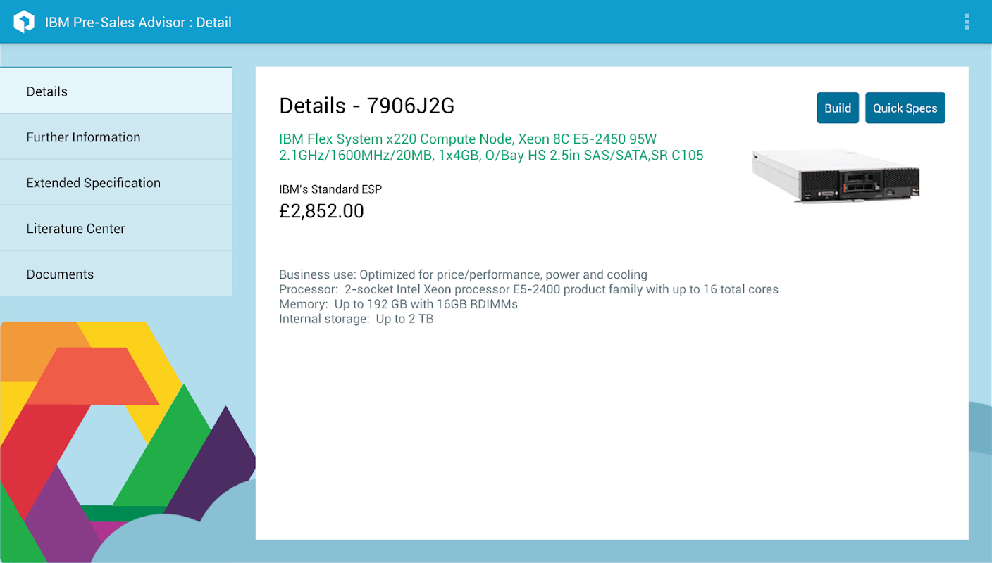 IBM Pre-Sales Advisor helps you easily work from reliable, up to date data with the ultimate goal of delivering accurately configured products and pricing. It provides fast access to unprecedented levels of information on IBM System x products in a context sensitive, user friendly fashion.
