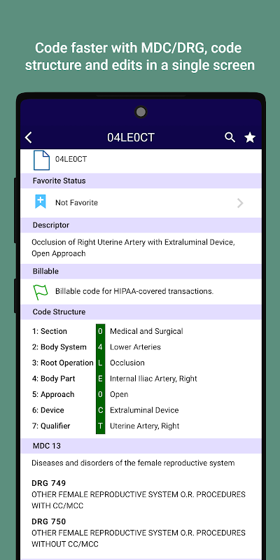 তাত্ক্ষণিকভাবে অনুসন্ধান করুন এবং CPT® এবং ICD10 কোড খুঁজুন—এমনকি টাইপো বা আংশিক পদ সহও। "কনুই ভর" বা "টেন ফিং" অনুসন্ধান করার চেষ্টা করুন—আপনি অবাক হবেন যে এটি কত দ্রুত এবং সঠিক।