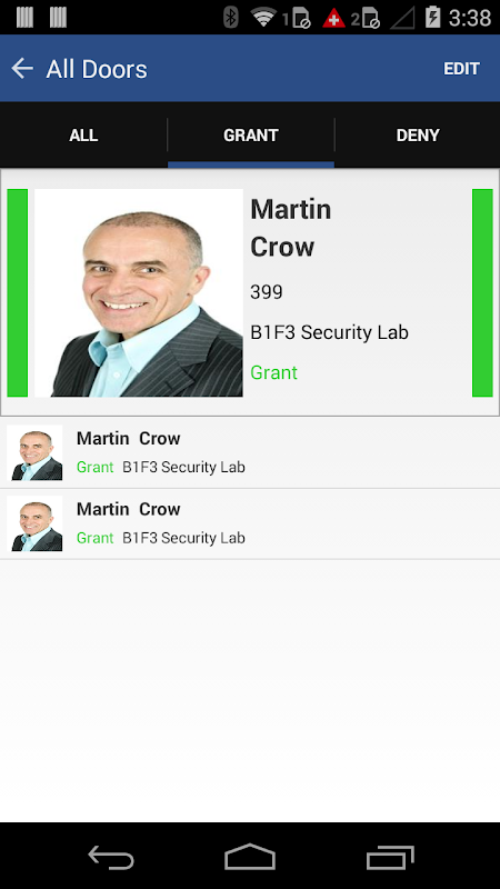 • Filter activity by Access Grant or Access Deny