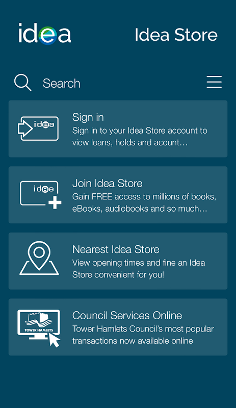 আপনার অ্যান্ড্রয়েড ফোন বা ট্যাবলেট থেকে অ্যাক্সেস টাওয়ার হ্যামলেটস আইডিয়া স্টোর ও গ্রন্থাগার. আপনার অ্যাকাউন্ট পরিচালনা ক্যাটালগ অনুসন্ধান, পুনর্নবীকরণ এবং রিজার্ভ বই.