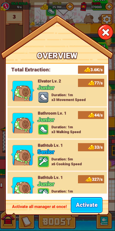 Build the ideal steam baths, hire capybaras as attentive attendants, upgrade the bathtubs, and create the perfect relaxation space for your capybara guests.