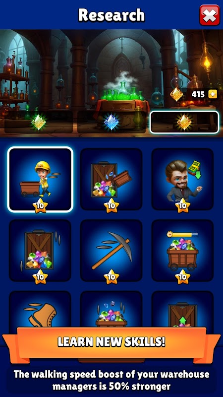 কয়েক ডজন বিভিন্ন খনি অন্বেষণ করুন এবং আপনার রাজ্য প্রসারিত করুন! সবচেয়ে রহস্যময় খনি জন্য আপনার খনিদের গভীরতম পাঠান!