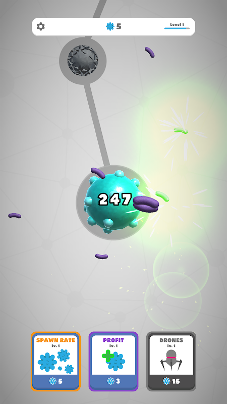 Spend your cells to buy powerful drones to automatically attack the viruses.