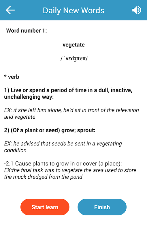 ✔ Daily New Words. The only way to truly learn is persistence! The app helps you learn every day by teaching you some new words. It will also show a push notification to remind you that it is time to study. You can change the number of daily new words show in the app settings. For extra help you can enable an online spell-checker to verify words as you type them.