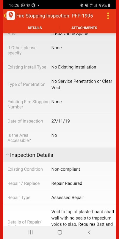 তাত্ক্ষণিকভাবে, অন এবং অফলাইনে, আপনার রেকর্ডগুলি, পরিদর্শনগুলি এবং চেকলিস্টগুলিতে অ্যাক্সেস আপনাকে আপনার প্যাসিভ ফায়ার সুরক্ষা প্রয়োজনীয়তা কার্যকরভাবে পরিচালনা করতে এবং আপনার সমস্ত ফায়ার স্টপিং সম্মতির একটি পরিষ্কার নিরীক্ষণ সরবরাহ করতে দেয়।