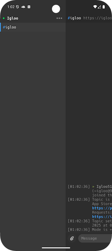 Android এর জন্য Igloo পেশ করা হচ্ছে: উন্নত কর্মক্ষমতা এবং স্থায়িত্ব সহ একটি সম্পূর্ণ বৈশিষ্ট্যযুক্ত IRC ক্লায়েন্ট। এই সর্বশেষ সংস্করণটি, গ্রাউন্ড আপ থেকে পুনরায় প্রকৌশলী করা হয়েছে, আপনি ইগলু থেকে যে সরলতা এবং বহুমুখিতা আশা করেন তা বজায় রেখে একটি পরিমার্জিত ব্যবহারকারীর অভিজ্ঞতা প্রদান করে।