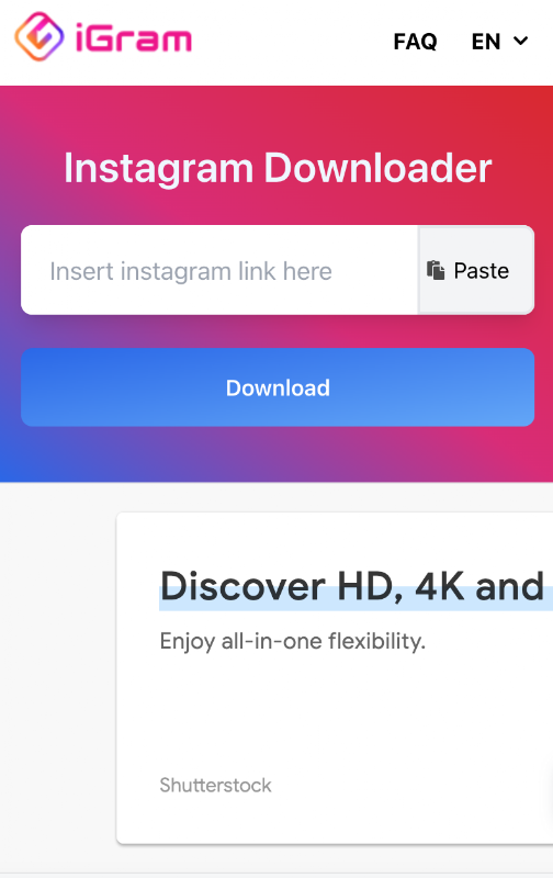 iGram হল একটি অনলাইন ওয়েব টুল যা আপনাকে Instagram ফটো, ভিডিও, রিল এবং IGTV ভিডিও ডাউনলোড করতে সাহায্য করে। iGram-কে ডিজাইন করা হয়েছে যে কোনো ডিভাইসে ব্যবহার করা সহজ, যেমন একটি মোবাইল ফোন, ট্যাবলেট বা কম্পিউটার।