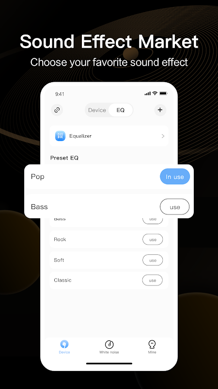 এই অ্যাপ্লিকেশনটি বিশেষভাবে iKF ব্র্যান্ডের ব্লুটুথ ইয়ারফোনের জন্য ডিজাইন করা হয়েছে। এটি শুধুমাত্র ইয়ারফোন পপ-আপ এবং ব্যাটারি ডিসপ্লে ফাংশন প্রদান করে না, তবে আপনাকে আপনার পছন্দ অনুযায়ী বিভিন্ন ফাংশন কাস্টমাইজ করার অনুমতি দেয়, যেমন ইয়ারফোন টাচ ফাংশন বন্ধ করা, ইয়ারফোন অনুসন্ধান করা, ওয়ান ক্লিক গেম মোড এবং মিউজিক ইকুয়ালাইজার গেমপ্লে। ভিডিও টিউটোরিয়াল, পণ্য ম্যানুয়াল, প্রায়শই জিজ্ঞাসিত প্রশ্নাবলী ইত্যাদির মতো প্রশ্নোত্তর ক্ষেত্রও রয়েছে। আসুন এবং বন্ধুদের সাথে অভূতপূর্ব অভিজ্ঞতা উপভোগ করুন নির্দ্বিধায় ব্লুটুথ ইয়ারফোনের অভিজ্ঞতা নিন! আরও উদ্ভাবনী গেমপ্লে আনলক করার জন্য আপনার জন্য অপেক্ষা করছে!