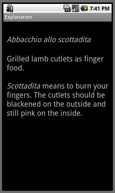 আর আপনি মেনু এ তাকান আছে এবং agnello এবং agnolotti মধ্যে পার্থক্য হতে পারে কি আশ্চর্য না. ইতালিয়ান খাবার - এটা পুরানো পকেট অভিধান তুলনায় দ্রুততর, আপনি এটি ব্যবহার এবং এটি খাদ্য উপর দৃষ্টি নিবদ্ধ করা হয় যখন কম মনোযোগ আকর্ষণ করে!