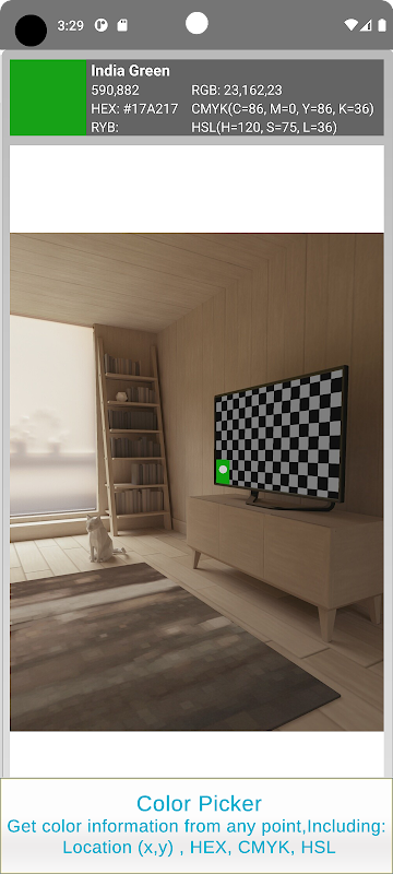 এছাড়াও আপনি রং RGB হিস্টোগ্রাম গ্রাফ দেখতে পারেন, ছবির যেকোনো অংশ থেকে কালার পিকার টুল ব্যবহার করে নির্দিষ্ট রঙের তথ্য পেতে পারেন, বিশ্লেষণের জন্য আপনার নিজস্ব প্যালেট নির্ধারণ করতে পারেন, রঙ বিশ্লেষণের নির্ভুলতা সেট করতে পারেন বা এমনকি রঙ বাক্সে ক্লিক করে প্রকৃত রঙের পিক্সেল দেখতে পারেন।