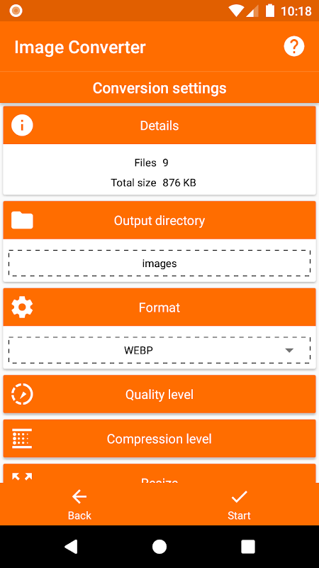 Preview images before conversion, as well as image file format, compression settings and dimensions for image resizing.
