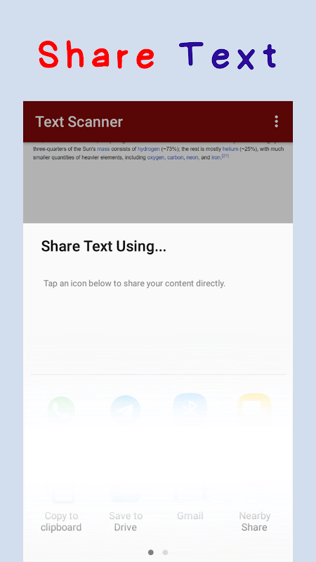 • সহজেই অন্যান্য অ্যাপের সাথে স্ক্যান করা টেক্সট শেয়ার করুন