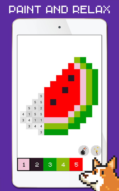 সংখ্যা স্যান্ডবক্স রঙিন অ্যাপ্লিকেশন, সংখ্যা দ্বারা ফ্রি পিক্সেল আর্ট।