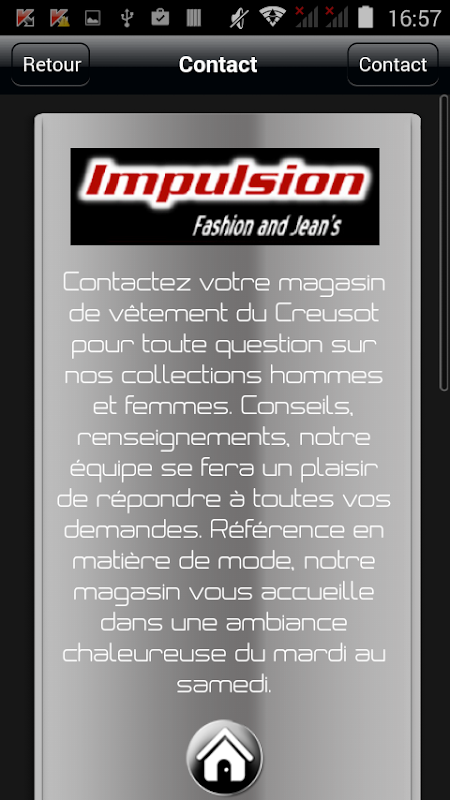 L'application "Impulsion" vous offre la possibilité de consulter toutes les infos utiles de la boutique (Tarifs, produits, avis…) mais aussi de recevoir leurs dernières News ou Flyers sous forme de notifications Push.