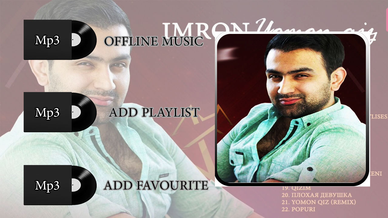 تنصل : كل المحتوى داخل التطبيق (imron 2022 Qo'shiqlari) ليس علامتنا التجارية. نحصل فقط على محتوى من محركات البحث والمواقع الإلكترونية. حقوق الطبع والنشر لجميع المحتويات في هذا التطبيق مملوكة بالكامل للمبدعين والموسيقيين وشركات الموسيقى المعنية. إذا كنت صاحب حقوق الطبع والنشر للأغاني الواردة في هذا التطبيق ولا تحب عرض أغنيتك ، فيرجى الاتصال بنا عبر مطور البريد الإلكتروني وإخبارنا بحالة ملكيتك للأغنية