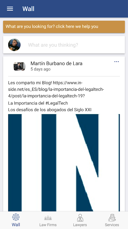 ইন-সাইড একটি ডিজিটাল প্ল্যাটফর্ম যা আইন বিশ্বের বিকাশের জন্য ডিজাইন করা হয়েছে। এটি, প্রধানত, একটি সামাজিক নেটওয়ার্ক যার মাধ্যমে গ্রাহকরা এবং আইনজীবীরা কোনও আচার-আচরণে যোগাযোগ করতে পারে, তথ্য আদান-প্রদান করতে, আলোচনা করতে এবং ডিজিটাইজড হওয়া আইনি পরিষেবাদিগুলি কিনতে পারলে দলগুলির পক্ষে স্বচ্ছ হয়। আমরা একটি সিআরএম, একটি ডকুমেন্ট ম্যানেজার, একটি প্রসেস প্রশাসক, ইলেকট্রনিক চালান এবং অন্যান্য যারা আধুনিকীকরণ, সরলীকরণ এবং আইনজীবীদের স্বাভাবিক অনুশীলনগুলি অপ্টিমাইজ করে, তারা কীভাবে কাজ করে তা পরিবর্তন করে এবং এইভাবে আমরা সমাজের আইনজীবীর ছবিটি পরিবর্তন করি। ।