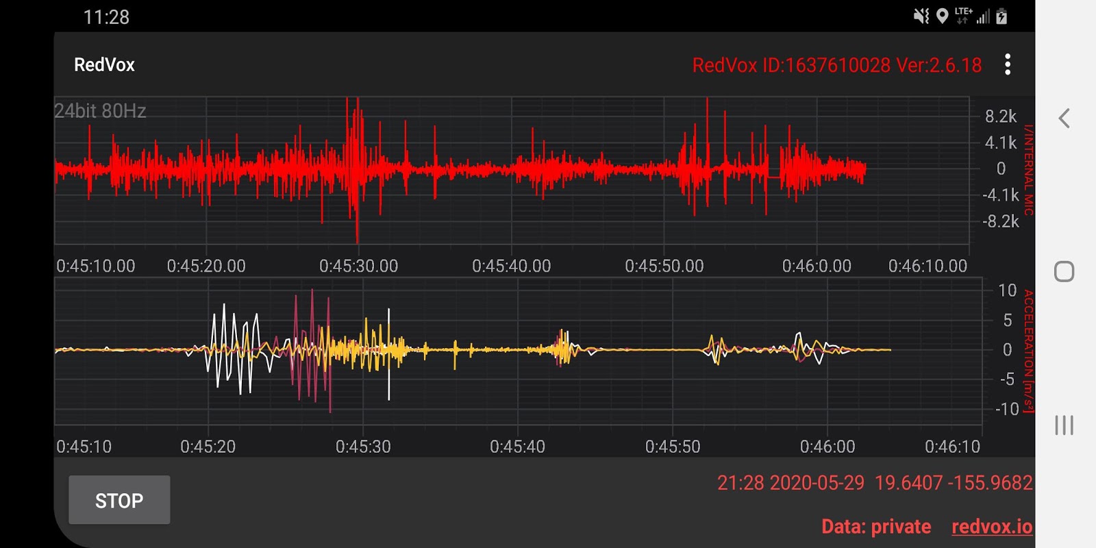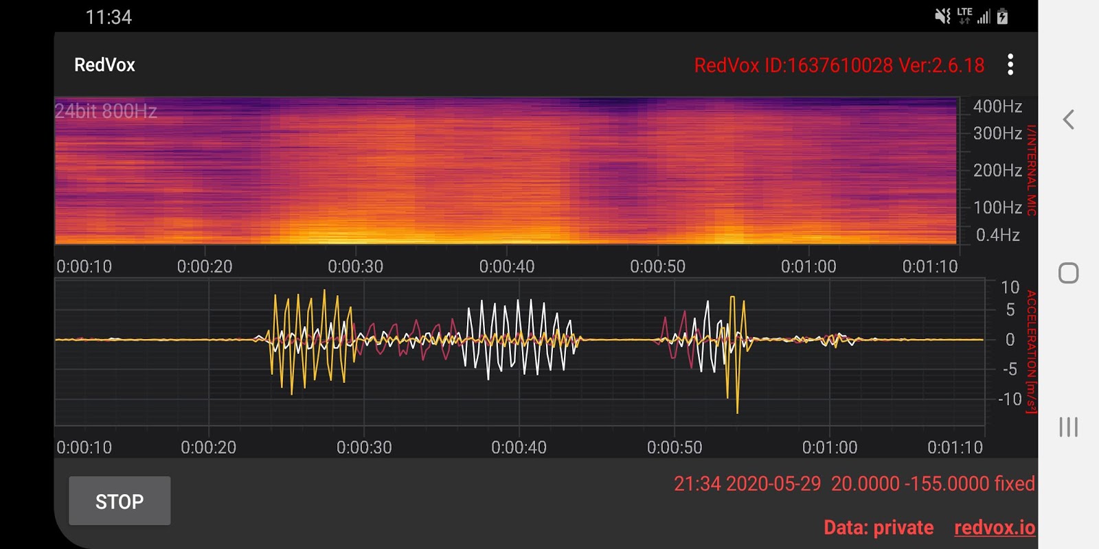 সাউন্ড ফাইলগুলি redvox.io এ রেডভক্স ক্লাউড সার্ভারে বেনামে পাঠানো হয়।