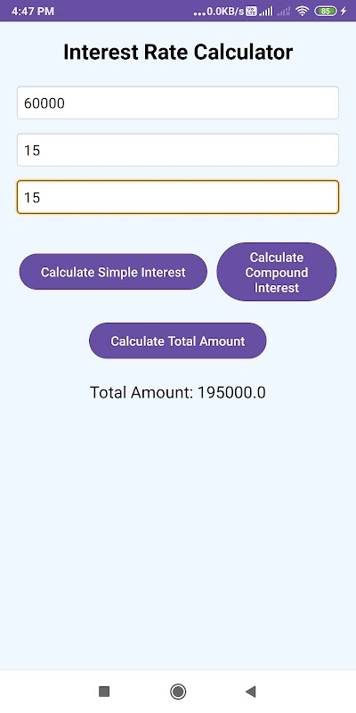 মূল পরিমাণ, সুদের হার এবং সময়কাল ইনপুট করে সরল সুদ গণনা করুন।