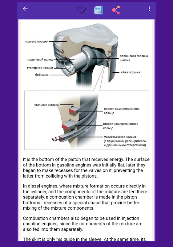 পিস্টন, কানেক্টিং রড, ক্র্যাঙ্কশ্যাফ্ট, ইঞ্জিন ফ্লাইহুইল, টাইমিং গিয়ার, ক্যামশ্যাফ্ট, ডেসমোড্রোমিক গিয়ার, সিলিন্ডার কন্ট্রোল সিস্টেম, অ্যাক্টিভ ইঞ্জিন মাউন্ট, কম্প্রেশন রেশিও পরিবর্তন সিস্টেম এবং আরও অনেক কিছু সহ ইঞ্জিন কীভাবে কাজ করে তা বুঝতে আমাদের অ্যাপ আপনাকে সাহায্য করবে।