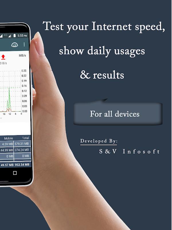 ইন্টারনেট স্পিড মিটার স্ট্যাটাস বারে আপনার ইন্টারনেটের গতি দেখায় এবং মোবাইল নেটওয়ার্ক এবং ওয়াইফাই নেটওয়ার্ক ব্যবহার করে বিজ্ঞপ্তি প্যানেলে কত পরিমাণ ডেটা ব্যবহার করা হয়েছে তা দেখায়। ইন্টারনেট স্পিড টেস্ট হল ব্যক্তিগত ইন্টারনেট অ্যাক্সেস আপনাকে ইন্টারনেট স্পিড মাস্টারের মতো আপনার অ্যান্ড্রয়েড স্মার্টফোন ডিভাইস ব্যবহার করার সময় যে কোনো সময় নেটওয়ার্ক সংযোগ নিরীক্ষণ করতে সহায়তা করে।