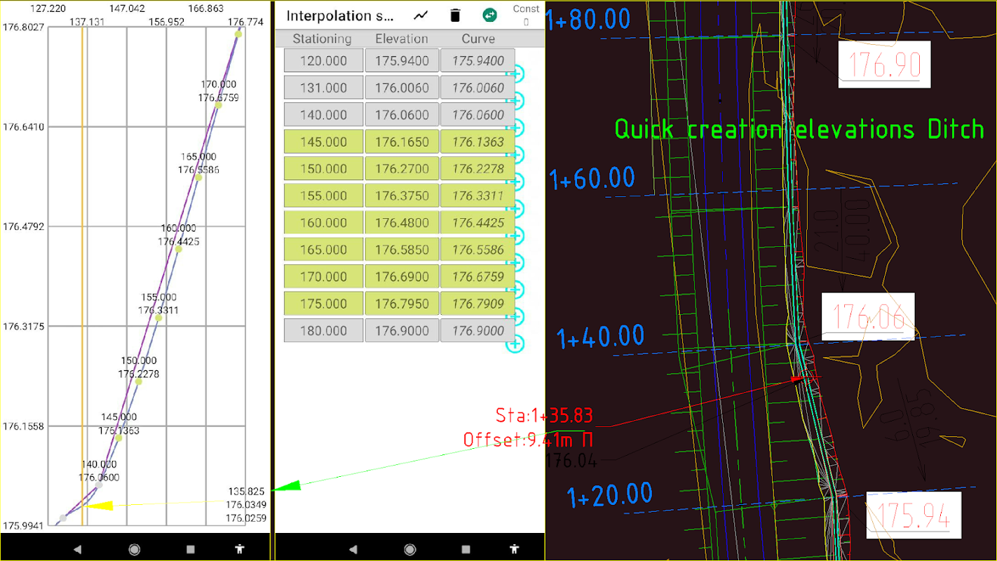ইন্টারপোলেটর রুটিন কাজগুলি স্বয়ংক্রিয় করার জন্য তৈরি করা হয়েছে। কল্পনা করুন যে আপনাকে একটি গ্যাস পাইপলাইনের জন্য একটি 155-মিটার পরিখা খনন করতে হবে, কিন্তু প্রকল্পটি শুধুমাত্র প্রবেশ এবং প্রস্থান পয়েন্ট নির্দিষ্ট করে। খননকারীর জন্য আপনাকে প্রতি 5 মিটারে খুঁটি চিহ্নিত করতে হবে। শুধু পরিখার শুরু এবং শেষ এবং এর দৈর্ঘ্যের জন্য উচ্চতা ইনপুট করুন এবং অ্যাপটি সমস্ত প্রয়োজনীয় মধ্যবর্তী উচ্চতা গণনা করবে। অ্যাপটি যে কোনো স্টেশনের জন্য উচ্চতা গণনা করবে। এছাড়াও, অ্যাপে মানগুলিকে মসৃণ করা সম্ভব (তবে এটি বেশিরভাগই অ্যাসফল্ট স্থাপনের জন্য প্রযোজ্য (অর্থাৎ কাঙ্ক্ষিত উচ্চতায় একটি মসৃণ প্রবেশদ্বার নিশ্চিত করতে (উদাহরণস্বরূপ, সেতুর সম্প্রসারণ জয়েন্ট)