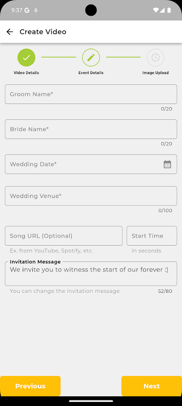 আমরা সবসময় আপনার প্রতিক্রিয়ার উপর ভিত্তি করে নতুন টেমপ্লেট এবং বৈশিষ্ট্য যোগ করছি। পরামর্শ আছে বা সাহায্য প্রয়োজন? যে কোনো সময় আমাদের সাথে যোগাযোগ করুন - আমরা আপনার ইভেন্টটিকে অবিস্মরণীয় করতে এখানে আছি!