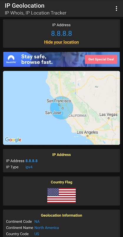 বিনামূল্যের IP লুকআপ পরিষেবা আপনাকে ভূ-অবস্থান এবং হোস্টের অবস্থানের একটি মানচিত্র এবং যেকোনো IPv4 বা IPv6 নেটওয়ার্কে সংযোগকারী নেটওয়ার্ক সরবরাহ করবে। যারা আইপি ঠিকানা কোন দেশ বা অঞ্চলের তা জানতে চান তাদের জন্য এটি নিখুঁত টুল। আপনি কোন শহর, রাজ্য এবং এমনকি কোন রাস্তার ঠিকানা হোস্ট অবস্থিত হতে পারে তাও খুঁজে পেতে পারেন।