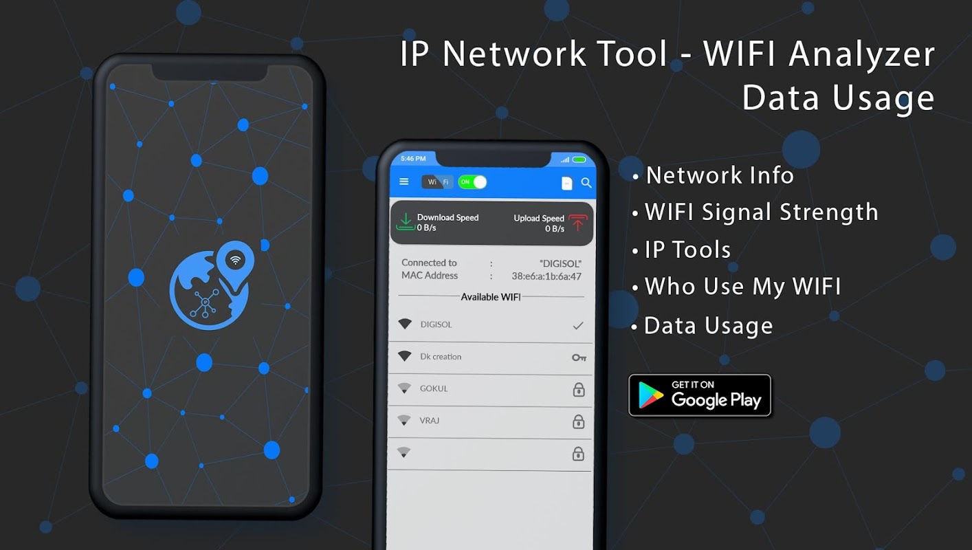 IP Network Tool - WiFi Analyzer - Data Usage App's Features:
