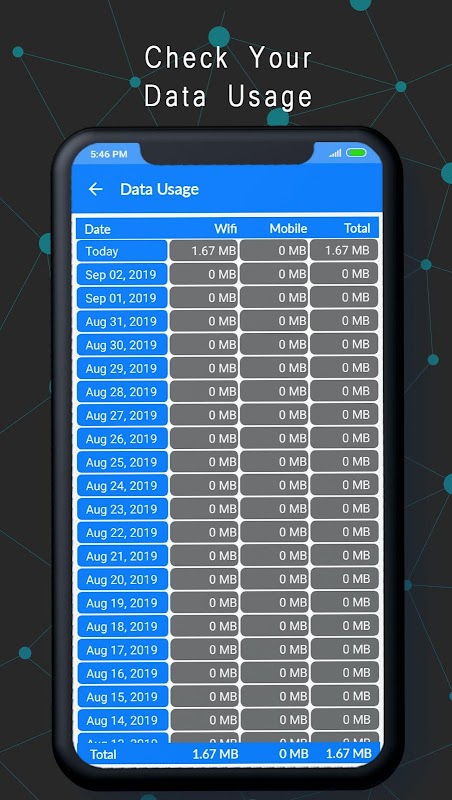 WiFi & Internet Data Usage is shows you to in Wifi accessing how much data used and in also Internet Data. Both data usage shows separately.