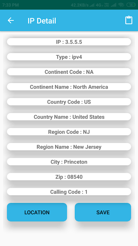অ্যাপ্লিকেশনটি একটি আইপি ঠিকানার বিশদ এবং অবস্থান দেয়