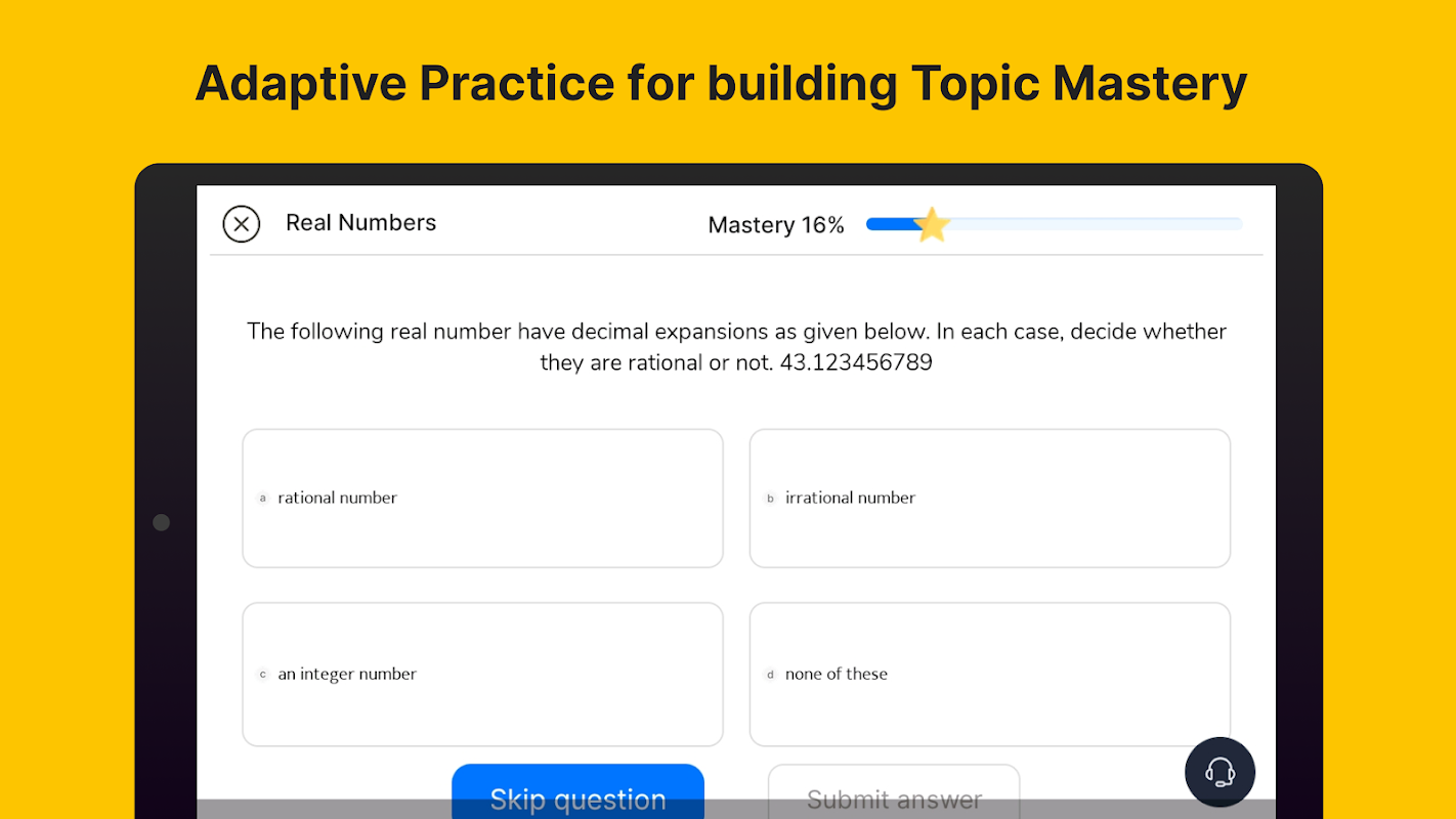 ছাত্ররা একবার অধ্যায়ের প্রতিকারে 100% দক্ষতা অর্জন করলে, তারা চূড়ান্ত পরীক্ষা দেওয়ার সুযোগ পায়। যদি তারা ফাইনাল টেস্টে 80% এর বেশি স্কোর করে, তাহলে তারা সেই অধ্যায়ের জন্য একটি সমাপ্তি ব্যাজ পাবে। অন্যথায়, তারা সম্পূর্ণ দক্ষতা অর্জন না করা পর্যন্ত প্রতিকারমূলক প্রশ্নগুলির চেষ্টা করার জন্য তাদের ফিরিয়ে নেওয়া হয়।
