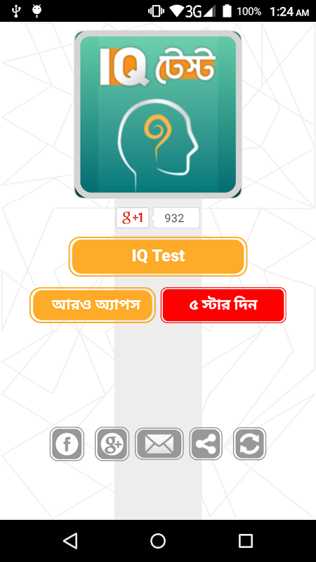 IQ Test bangla অ্যাপটি শুধুমাত্র আপনার আই,কিউ বাড়াতেই সাহায্য করবে না বরং এটি আপনাকে আপনার অবসর সময়কে দারুনভাবে কাজে লাগাবার একটি সুযোগ করে দিবে, সেইসাথে আপনাকে দিবে সমস্যা সমাধান করার অপার আনন্দ ও বিজয়ের তৃপ্তি। বাংলা এস এম এস ও ফেসবুক স্ট্যাটাস এর মাধ্যমে শেয়ার করুন আপনার বন্ধুদের সাথে।