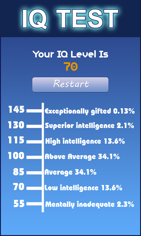 Do you know about your IQ level? If your answer is 'NO' and now you are willing to test your IQ level, then no need to go anywhere & find anything. You can test your IQ on Android phone. If you want to test your IQ level, then you have a best App option and that is one and only "IQ TEST App".
