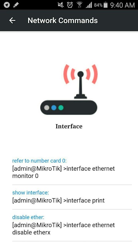 Commands are available on Cisco ( routers , switch ) and MikroTik