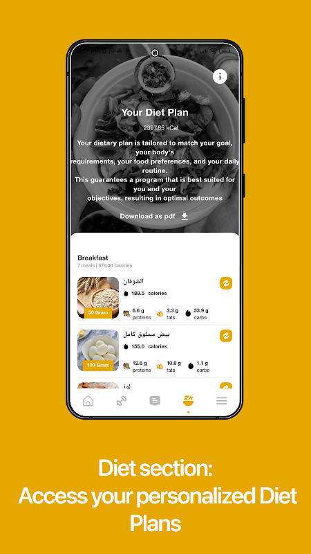 ব্যক্তিগতকৃত খাদ্য পরিকল্পনা: প্রয়োজন অনুযায়ী পরিবর্তনের অনুরোধ করার বিকল্প সহ আপনার ব্যক্তিগতকৃত খাদ্য পরিকল্পনা দেখুন এবং পরিচালনা করুন।