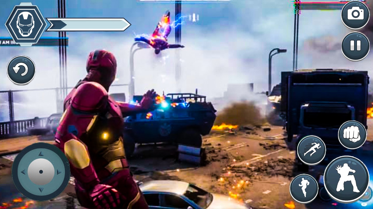 🤖 Utilize your energy, flashing light powers from hand, iron suit guns, jump, fly, punch, kick to win the battle