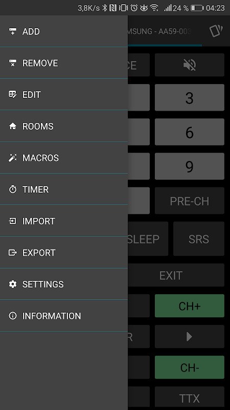 - আপনার ফোন / ট্যাবলেট আছে একটি সমন্বিত আইআর ব্লাস্টার মূল irplus অ্যাপ্লিকেশন ব্যবহার. (Https://play.google.com/store/apps/details?id=net.binarymode.android.irplus)