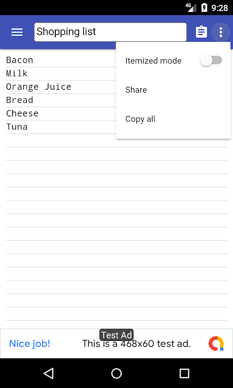 Simple notepad app suitable for itemaized format.