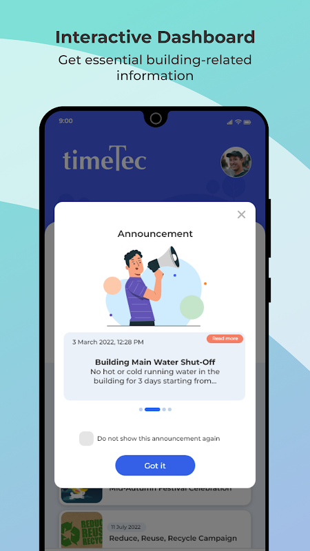 - বিল্ডিং-সম্পর্কিত তথ্য অ্যাক্সেস করুন, যেমন ঘোষণা, নথি, এবং যোগাযোগের বিবরণ