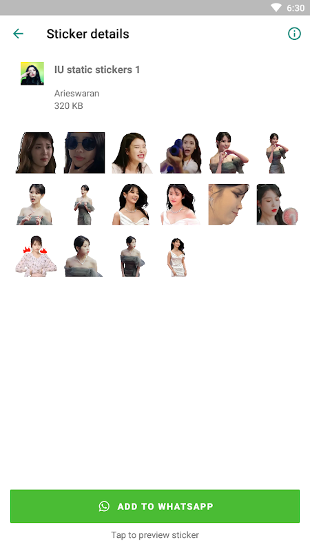 আইইউ হোয়াটসঅ্যাপ স্টিকার অ্যাপ ব্যবহার করা একটি হাওয়া! শুধু Google Play Store থেকে অ্যাপটি ইনস্টল করুন এবং সুন্দরভাবে ডিজাইন করা স্টিকার সংগ্রহটি দেখুন। বিভাগ এবং একটি সুবিধাজনক অনুসন্ধান কার্যকারিতার সাহায্যে সহজেই আপনার প্রিয় স্টিকার খুঁজুন। একবার আপনি এমন একটি স্টিকার আবিষ্কার করলে যেটি পুরোপুরি মেজাজ ক্যাপচার করে, প্রিভিউ করতে এটিতে আলতো চাপুন এবং এটি আপনার WhatsApp স্টিকার প্যাকে যোগ করুন।