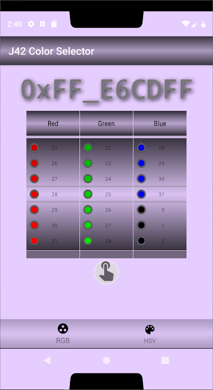 The color Alpha-Red-Green-Blue hex code is displayed at the top of the screen. Format is 0xAA_RRGGBB ( AA=Alpha, RR=Red, GG=Green, BB=Blue ).