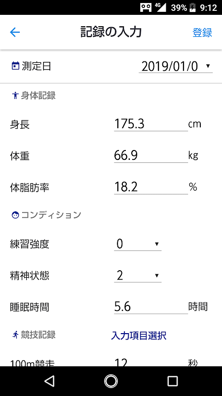 · শরীরের রেকর্ড... উচ্চতা, ওজন, শরীরের চর্বি শতাংশ