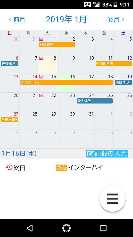 আপনি বিভিন্ন সময়সূচী নিবন্ধন করতে পারেন, টুর্নামেন্ট যেমন ক্লাব কার্যক্রম, খেলার সময়সূচী থেকে ব্যক্তিগত সময়সূচী পর্যন্ত।